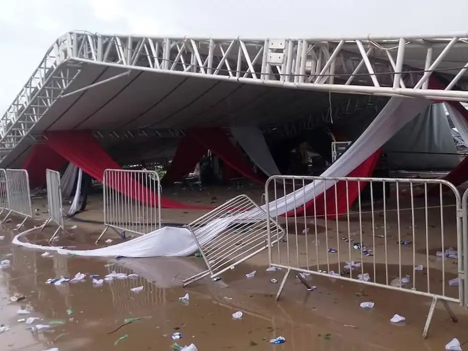 Uma pessoa morreu e cerca de 40 ficaram feridas com a queda de uma estrutura metálica montada…