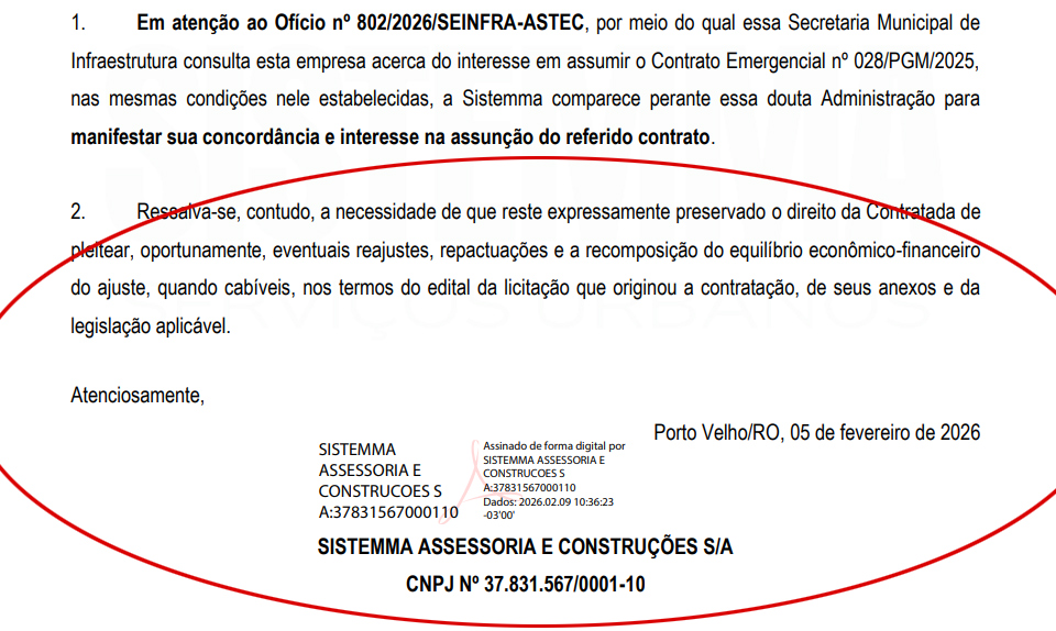 Documento expõe contradição da Prefeitura de Porto Velho e levanta suspeita de favorecimento à Sistemma no contrato do lixo